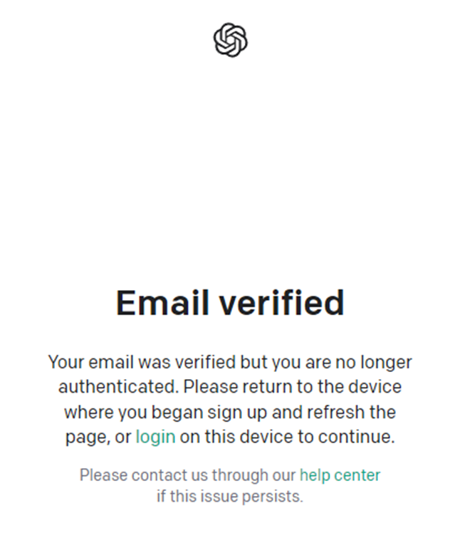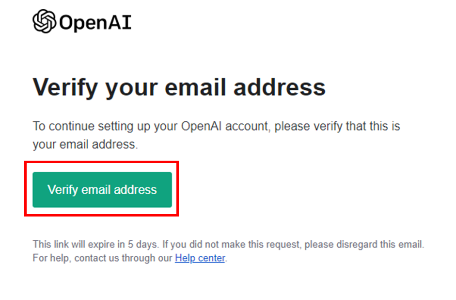 자신의 이메일을 확인해보면 쳇GPT에서 보낸 확인 이메일이 도착해 있을 것입니다. Verift email address를 클릭하면, 이메일의 인증이 완료되었다는 확인 메시지가 나오게 됩니다.