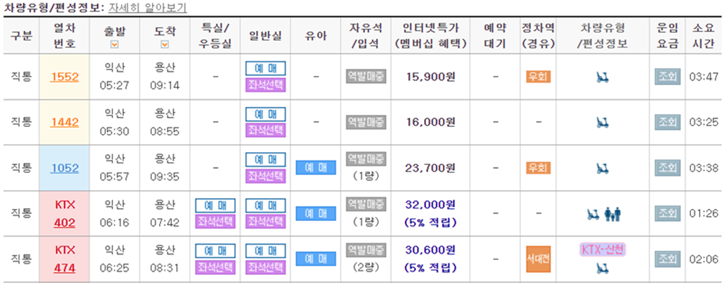 코레일 기차표의 인기 있는 노선과 시간대는 빠르게 매진될 수 있으므로, 예매 할 수 있는 시간과 노선을 미리미리 확인하고 예매를 해두시는 것이 좃습니다.