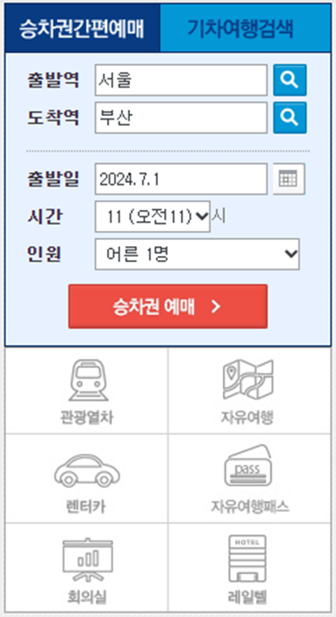 여행의 시작은 코레일 기차표 예매로부터! 지금 바로 코레일 기차표 예매를 시작해보세요.